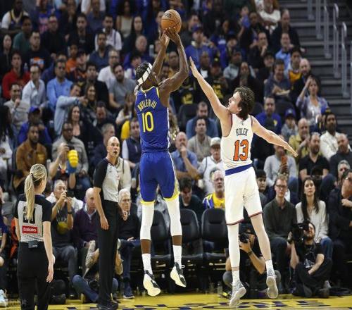 进入末节决战,场上出现争议一幕,追梦在防守中拉拽对手腿脚,被吹罚一级恶意犯规。尼克斯借势率先连得4分追分,梅尔顿随后命中三分,将分差缩小至仅6分,局势再度紧张。关键时刻库里与巴特勒挺身而出,两人接连命中三分,引领勇士打出一波13-2的攻势,将比分改写为113-96,重新建立17分的领先优势。尼克斯顽强回敬一波10-2的攻势,分差重回9分,迫使勇士请求暂停。暂停调整后,巴特勒与阿奴诺比各得2分,波杰姆斯基与麦克布莱德又各中一记三分,攻防节奏再度加快。随后波杰姆斯基与巴特勒接连上篮得手,将优势扩大到124-111,尼克斯翻盘无望。最终,勇士成功逆转战胜尼克斯。