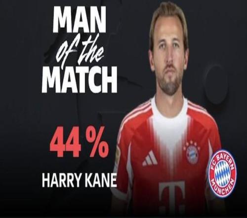 最终经过德甲官网球迷投票,凯恩以44%的得票率当选全场最佳球员。