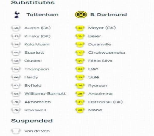 热刺vs多特:索兰克PK吉拉西,阿德耶米、西蒙斯出战