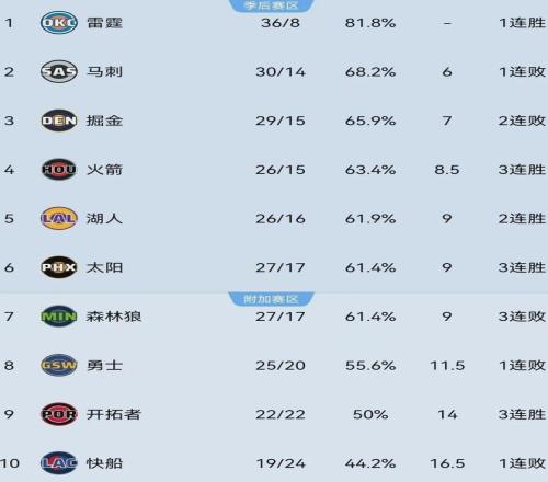 随着主场111-106险胜马刺,火箭豪取三连胜,目前以26胜15负排名西部第四,湖人则以26胜16负紧随其后。