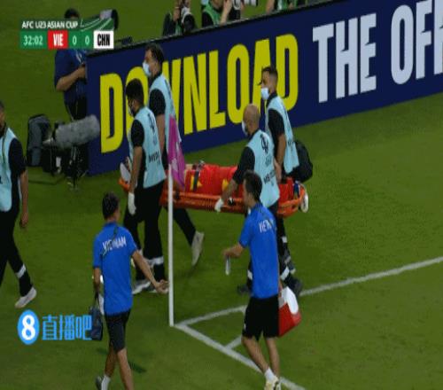 在U23亚洲杯半决赛越南U23vs中国U23的比赛中,第30分钟阮晓明与向余望对抗后受伤倒地不起,随后无法坚持比赛被担架抬离球场。
