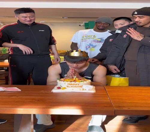陈家政把生日蛋糕切给杜锋指导随后遭徐杰、胡明轩等人按头摩擦