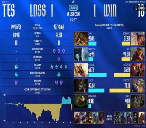 TES:上单369、打野naiyou、中单Creme、下路JiaQi、辅助Fengyue