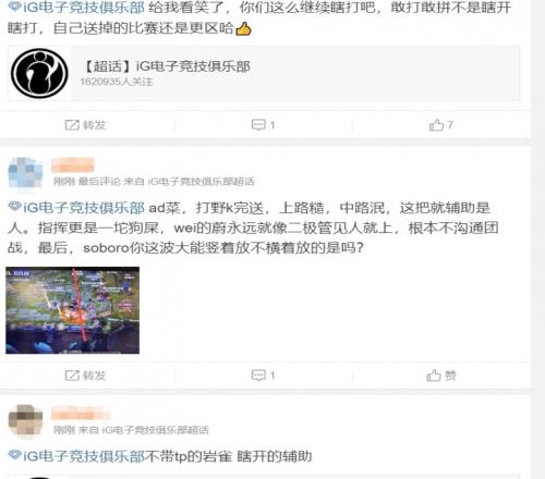 体育播报1月21日宣 今日LPL第一赛段组内赛iG首局惨遭TES翻盘,而在本场比赛中iG的整体表现可谓是一言难尽;赛后也自然难逃粉丝们的口诛笔伐。