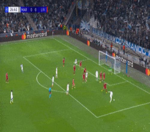 第60分钟,特拉奥雷面对阿利松射门打飞,马赛错失良机。